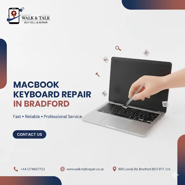 At Walk & Talk, we provide reliable MacBook keyboard repair in Bradford, restoring smooth and accurate typing.