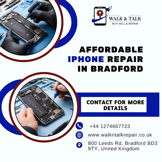 Looking for affordable iPhone repair in Bradford with fast and trusted service? Walk & Talk offers professional iPhone repairs at competitive prices using high-quality parts and experienced technicians.